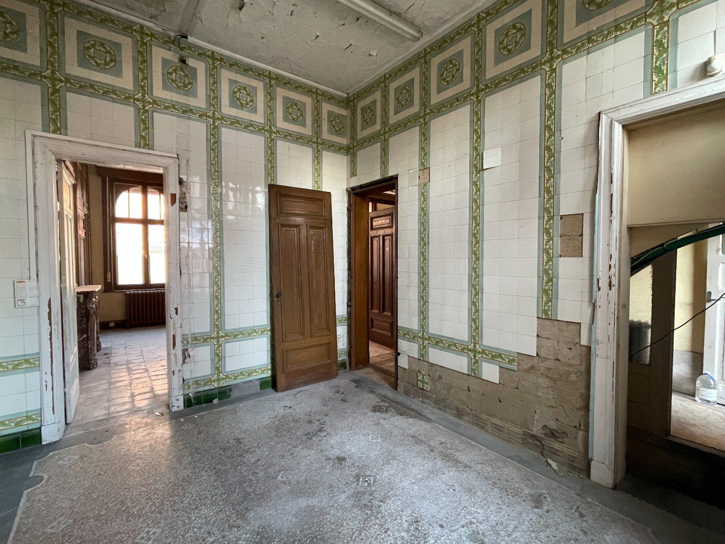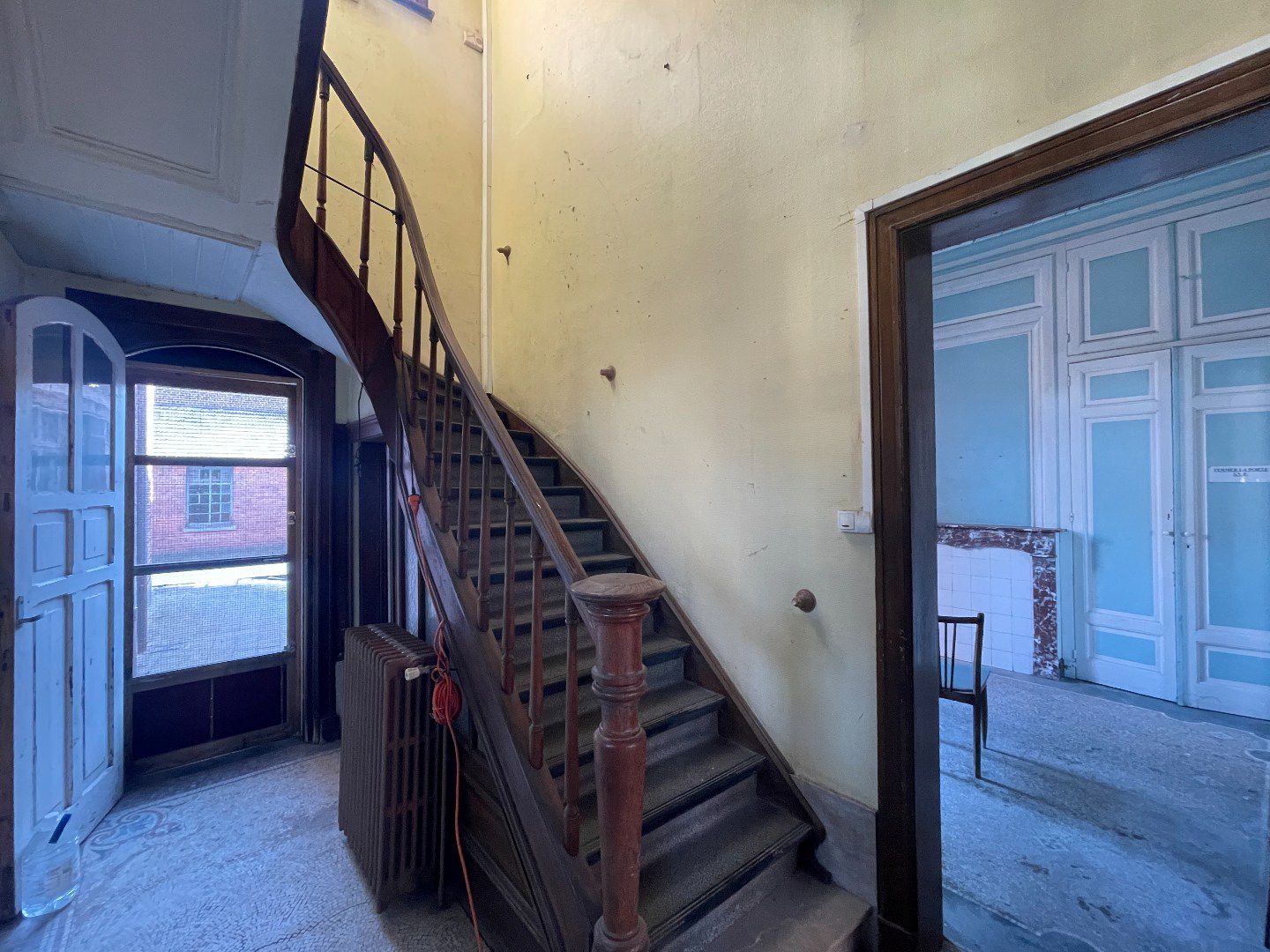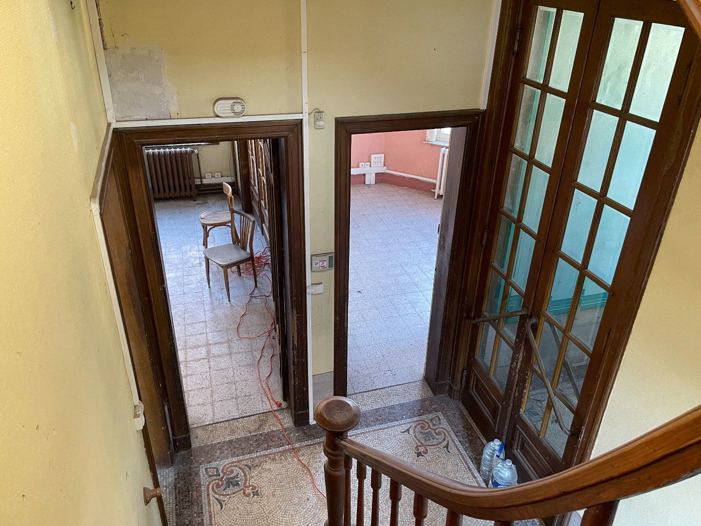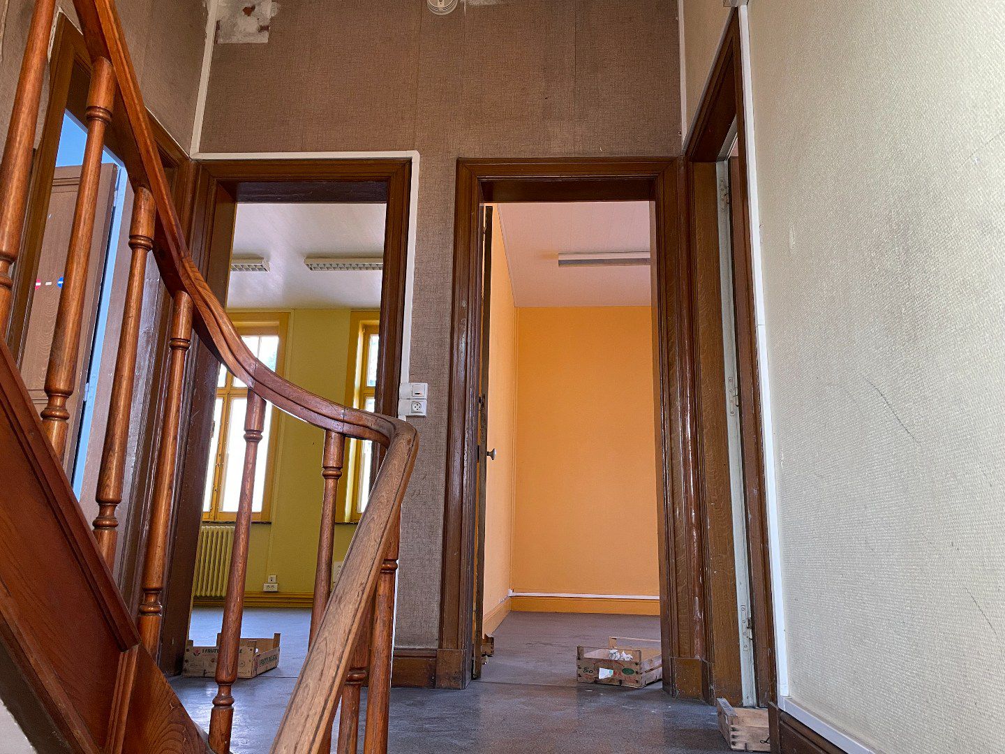 L'immeuble dispose de 2 étages. Au premier niveau, se trouvent 5 chambres spacieuses, au deuxième niveau, une 6ème chambre et deux grands espaces de grenier à aménager.