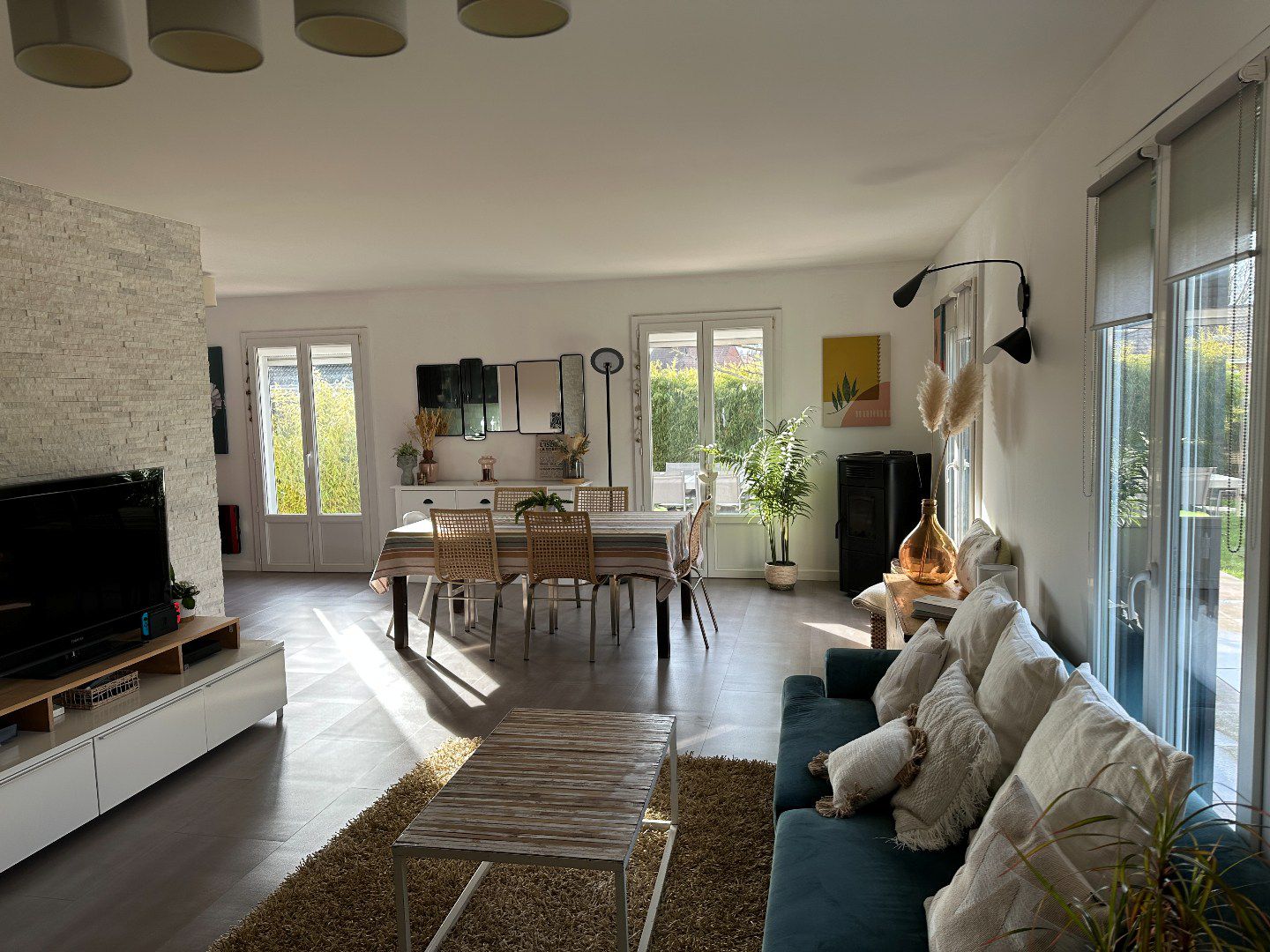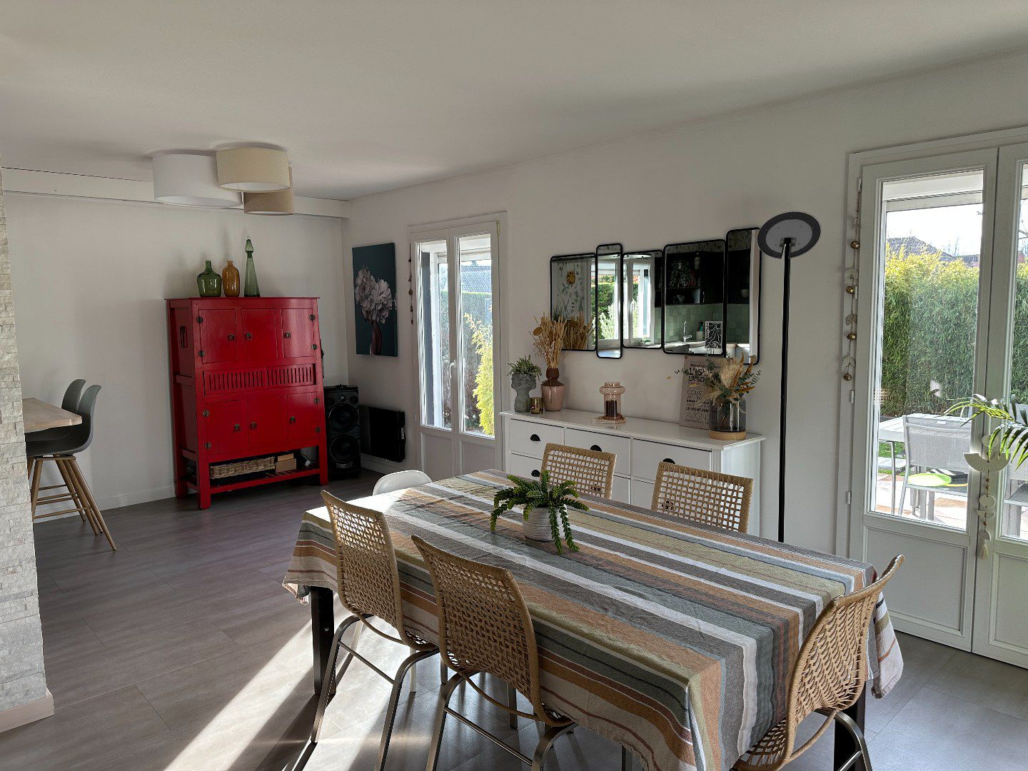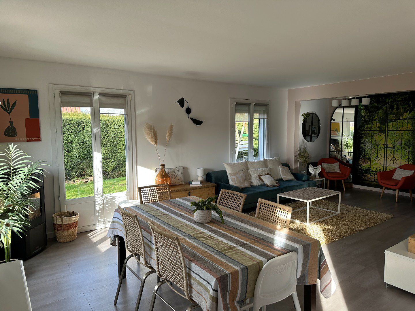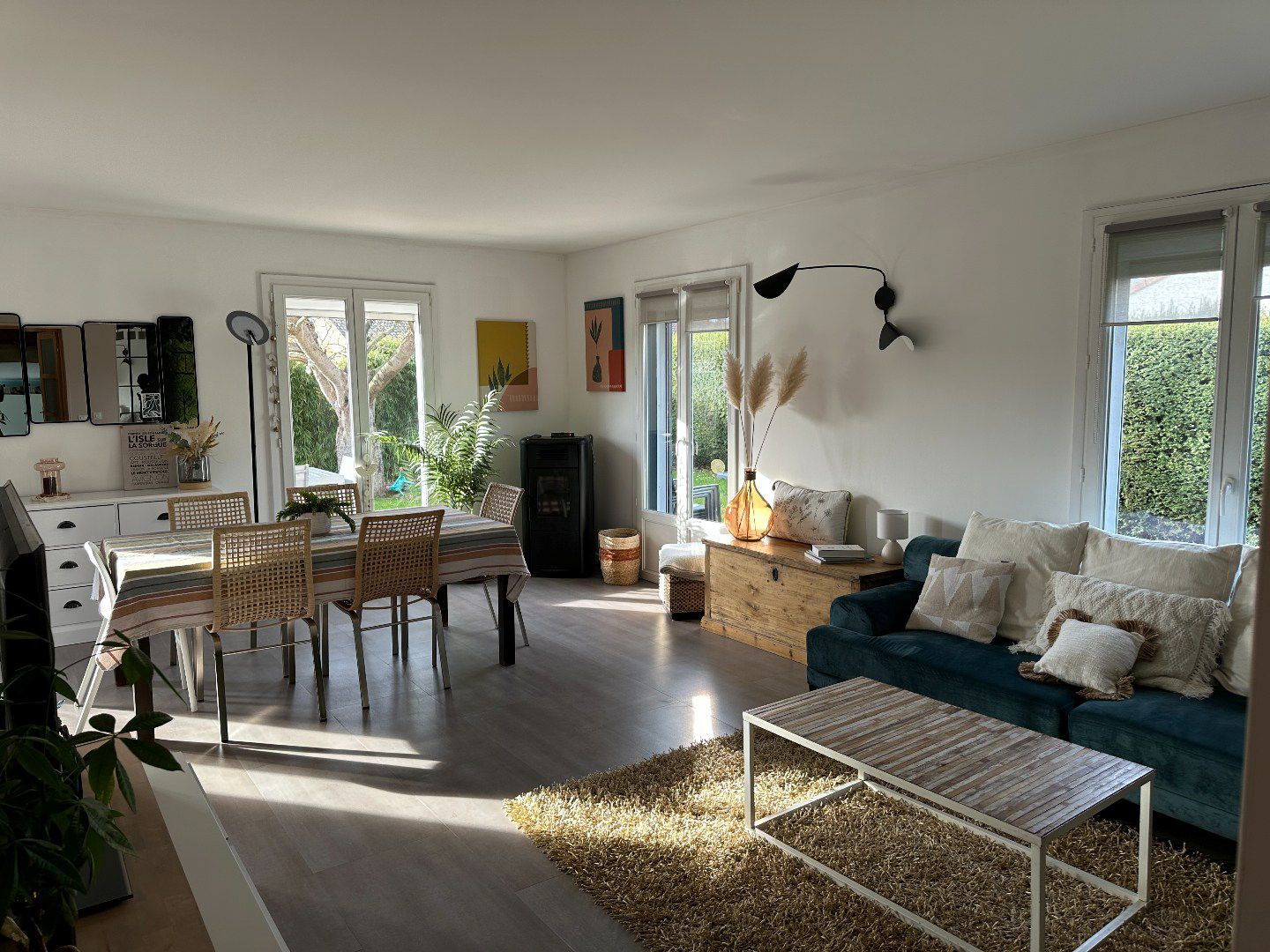 Les pièces de vie ont un beau volume, elle donnent toutes vue et accès au jardin.
