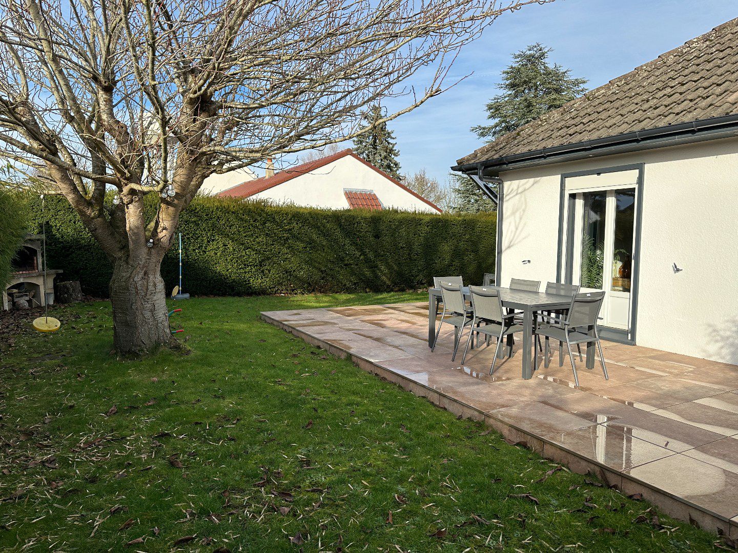 Son jardin est planté, sa grande terrasse est bien exposée et sans vis-à-vis.